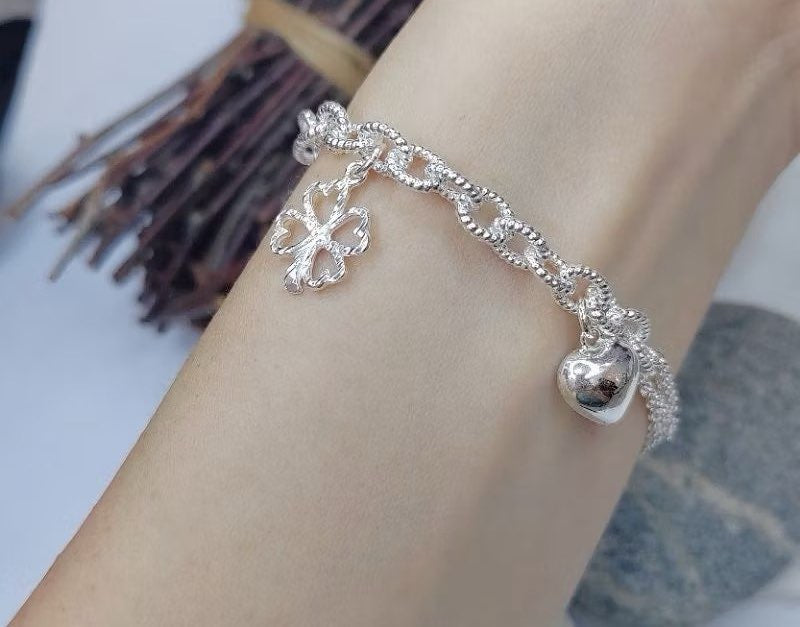 Whimsical Heart and Four-Leaf Clover Bracelet